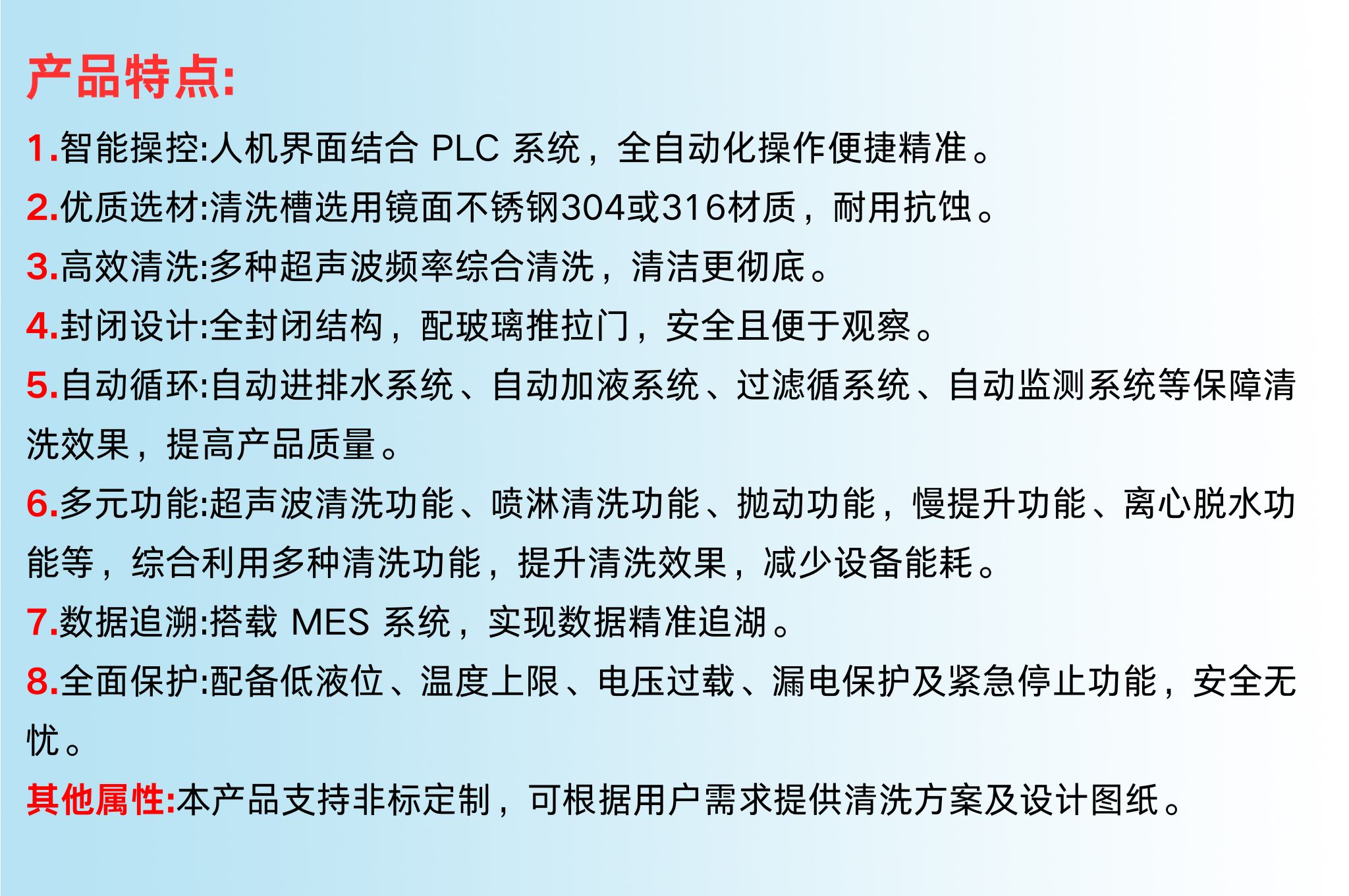 类型: 超声波清洗+慢升脱水+热风烘干