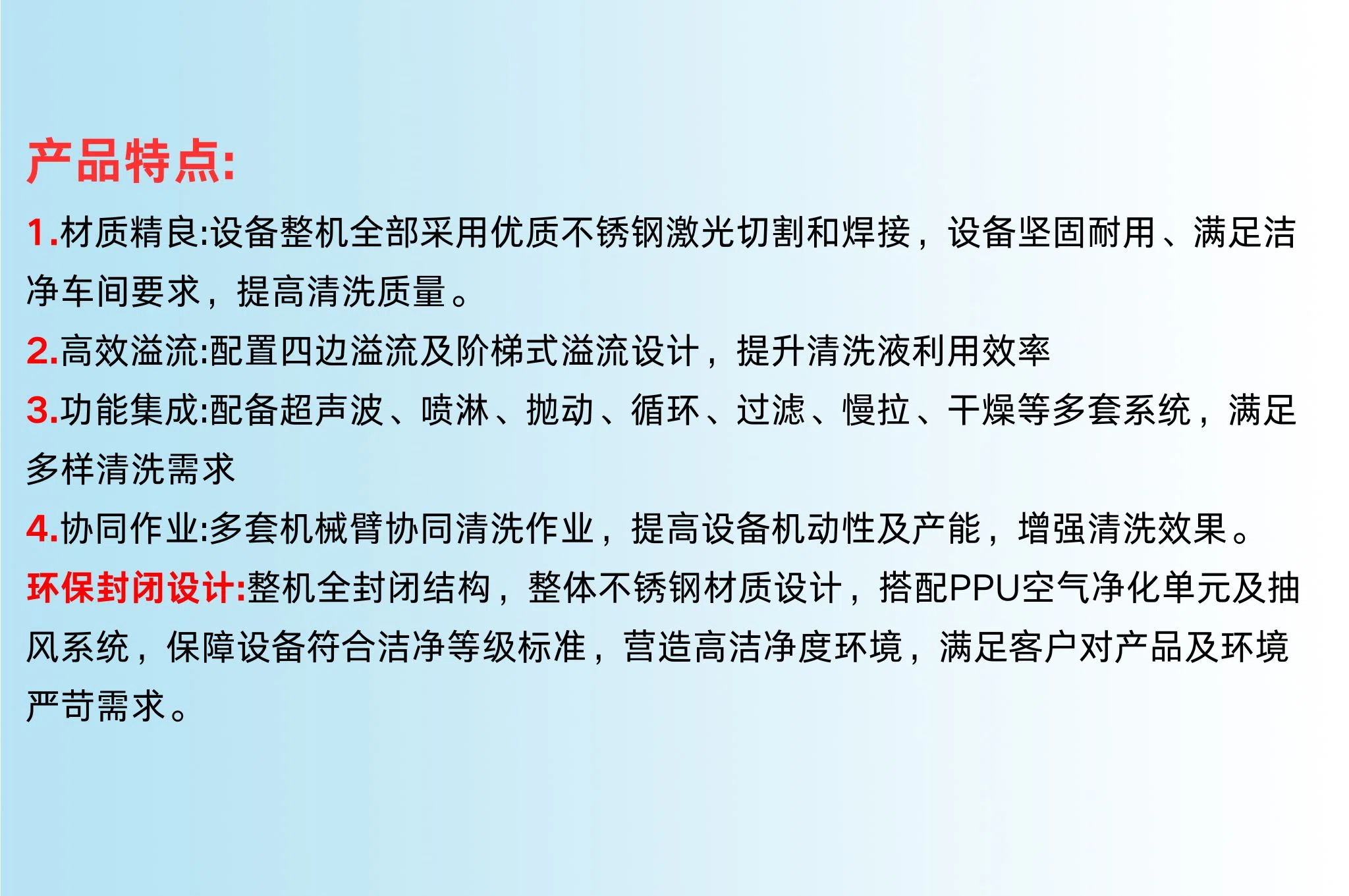 光学玻璃全自动超声波清洗机,专为光学玻璃清洗精心打造。它以超纯水与纯水为清洗介质,凭借多道精密的超声波清洗、高效脱水及快速干燥工序,确保光学玻璃达到极高的洁净度标准,满足行业严苛要求。